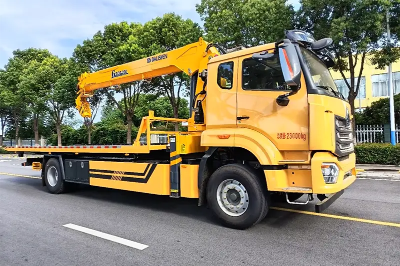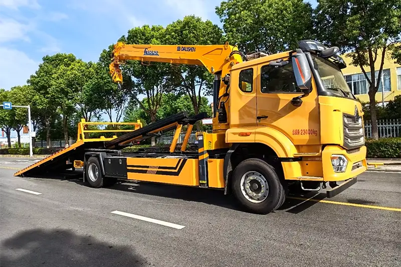 Raskaaseen käyttöön kantava tasosänky: 10 tonnin kantava ylärunko, valmistettu korkealaatuisesta 5 mm paksusta ruudullisesta teräslevystä (integroitu tyyppi, lävistyspuristinlevy valinnainen), kokonaispituus 6,8 m, leveys 2,4 m; valinnainen 5,6 m emolevy + 1,2 m hydraulinen flip-takalauta, joustava erilaisten pienten ja keskikokoisten vikaajoneuvojen lastaukseen, luistamaton ja kulutusta kestävä.