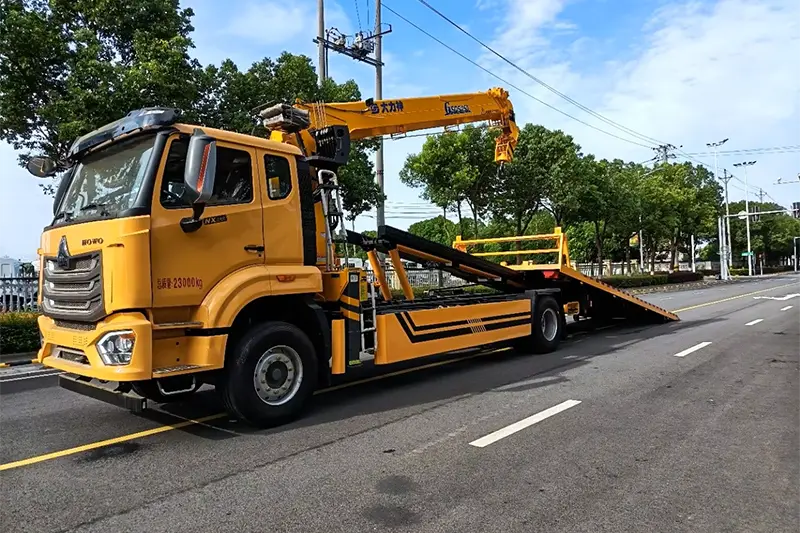Sinotruk Howo 4*2 One Drag Two Wrecker Truck With 8T Crane on monitoiminen raskaan liikenteen pelastusajoneuvo, joka yhdistää vikaajoneuvojen hinauksen, noston ja siirron. Se on suunniteltu pelastuspalveluun, kaupunkiliikenteen hallintaan, teknisiin pelastustehtäviin ja suurten ajoneuvojen vikojen käsittelyyn. Tämä malli, joka eroaa tavallisista yksitoimikoneista, yhdistää 10 tonnin kantavan lavan, 8 tonnin teleskooppisen vetovarren ja 8 tonnin suoravartisen XCMG-nosturin, jotka toteuttavat kaksi toimintoa: yhden vedon kaksi vetoa ja paikan päällä tapahtuvaa nostoa, mikä parantaa huomattavasti pelastustehokkuutta ja sopeutumiskykyä. Se on tienpelastusryhmien, liikennelain valvontaosastojen ja autokorjausyritysten ydinlaitteisto, jolla on vakaa suorituskyky ja vahva kuormituskyky selviytyä erilaisista monimutkaisista pelastustehtävistä.